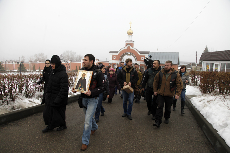 От братии Троице-Сергиевой Лавры участники пробега передали монастырю икону преподобного Сергия Радонежского. Настоятельница игумения Феодосия (Бессонова) в свою очередь преподнесла в дар путешествующим икону Божией Матери «Одигитрия» и икону святителя Алексия Московского, небесного покровителя обители.