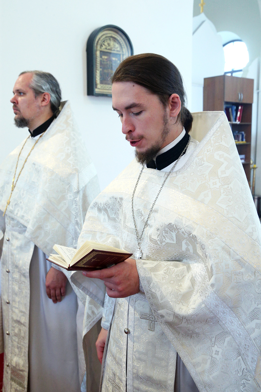 Его Высокопреосвященству сослужили благочинный Центрального округа иерей Игорь Москвичев, настоятель храма иерей Николай Цаплин, иерей Максим Плякин, иерей Роман Солодко, протодиакон Олег Дроздов, диакон Александр Аренков и диакон Иоанн Фомин.