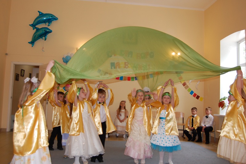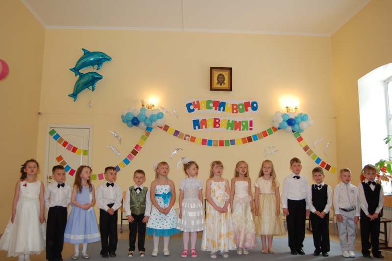 По окончании Божественной литургии и благодарственного молебна ребята и их родители приняли участие в праздничном мероприятии. На корабле «Мечта» выпускники центра отправились в путешествие к Школьным островам. Дети порадовали гостей веселыми песнями и танцами. Украшением праздника стал спектакль «Колоски», где в символической форме зрителям рассказали о взращивании детской души.