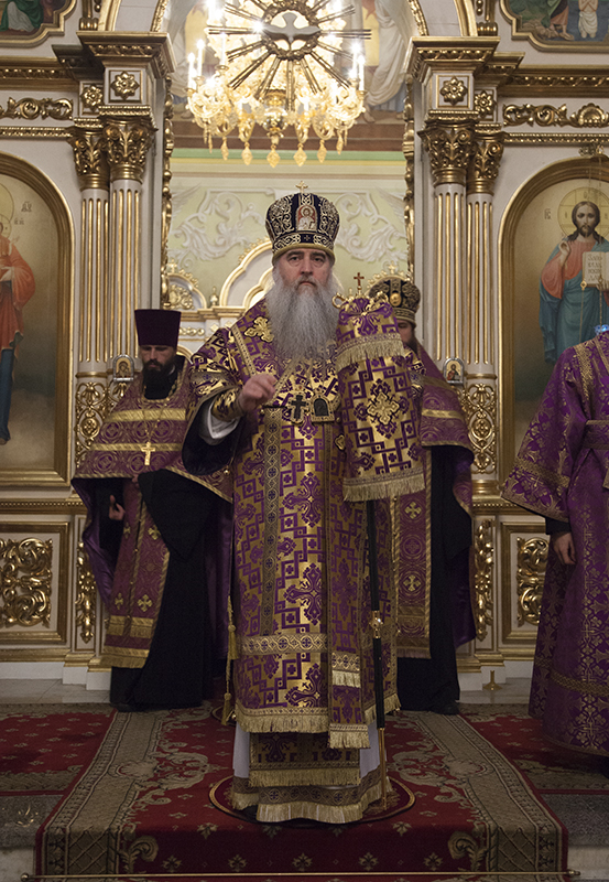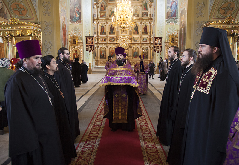 Его Высокопреосвященству сослужили ключарь храма архимандрит Евфимий (Митрюков), иерей Сергий Филимонов, иерей Сергий Чамышев, иерей Илия Козлов, иерей Николай Русских, иерей Димитрий Чжан, протодиакон Олег Дроздов, диакон Александр Аренков, диакон Борис Бурлаков.
