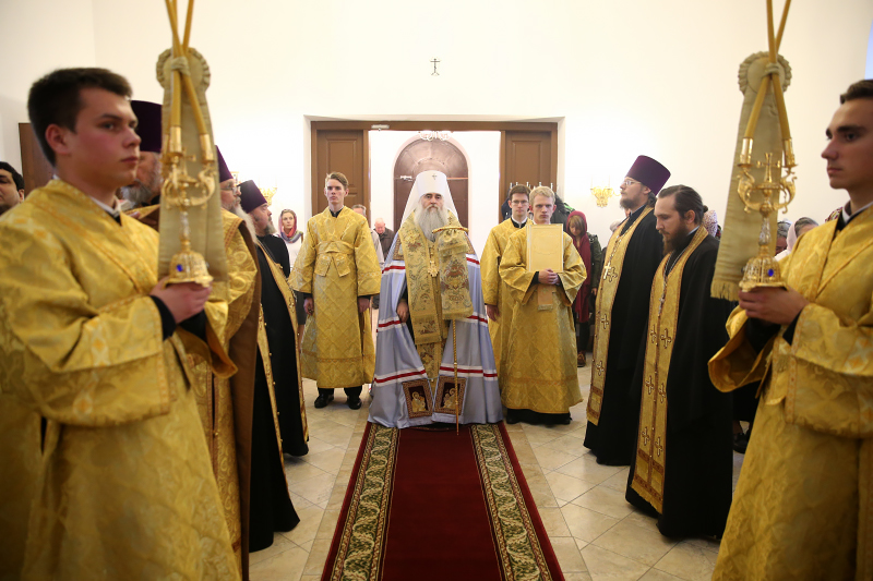 Его Высокопреосвященству сослужили благочинный Центрального округа иерей Игорь Москвичев, протоиерей Василий Стрелков, протоиерей Вячеслав Казанцев, иерей Сергий Постнов, протодиакон Александр Пушкарев, протодиакон Олег Дроздов.