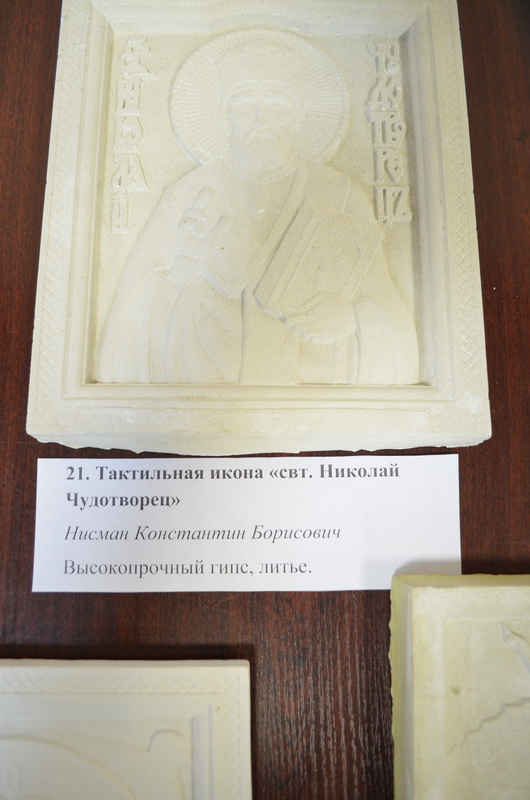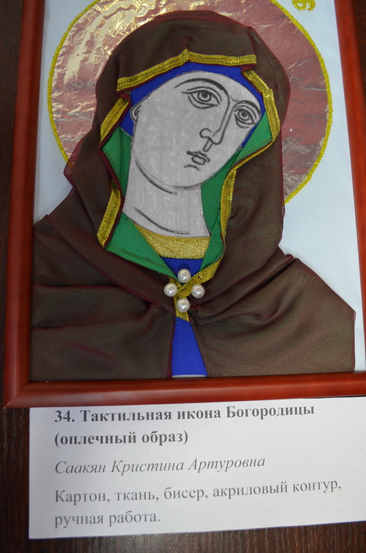 15 октября в Областной специальной библиотеке для слепых открылась выставка тактильных икон. Такие иконы, предназначенные для незрячих людей, изготавливают волонтеры в рамках проекта, реализуемого Свято-Покровским храмом Саратова.