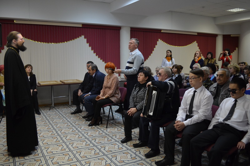 С приветственным словом к собравшимся обратился руководитель проекта – клирик Покровского храма иерей Кирилл Петрович. Священник рассказал о технике изготовления тактильных икон и о способах, позволяющих сделать процесс их создания более простым и малобюджетным.