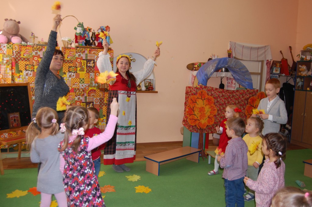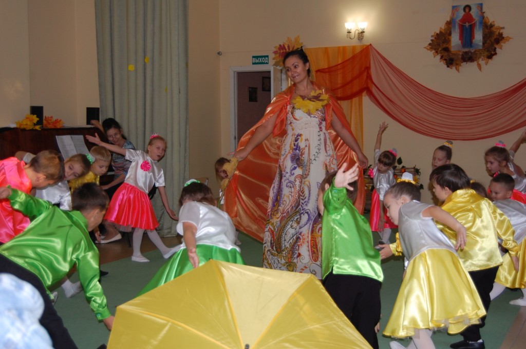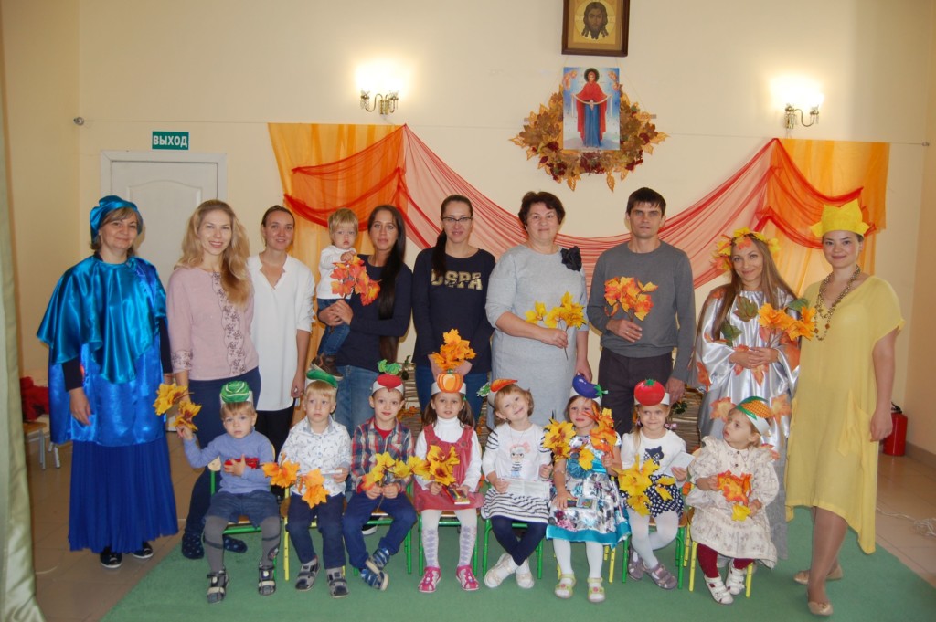 Настоятель храма равноапостольной Марии Магдалины протоиерей Алексий Абрамов рассказал ребятам об истории праздника, его традициях. Педагоги и дети подготовили для гостей праздничную программу: танцы, стихи, песни. Костюмированные персонажи поиграли с ребятами в игры, загадали загадки. Дети и родители помогли Осени найти краски и раскрасили ее наряд разноцветными листьями.
