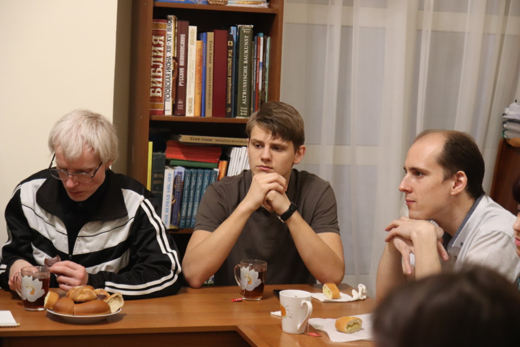 Отец Игорь рассказал участникам клуба о языке и культуре времени, в которое жил Христос. Он был носителем арамейского языка, который является одним из диалектов иврита. Собравшиеся послушали, как звучит молитва «Отче наш» на арамейском языке, узнали об обычаях Ближнего Востока – о возлежании, умовении ног и т.д.