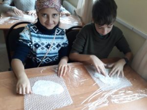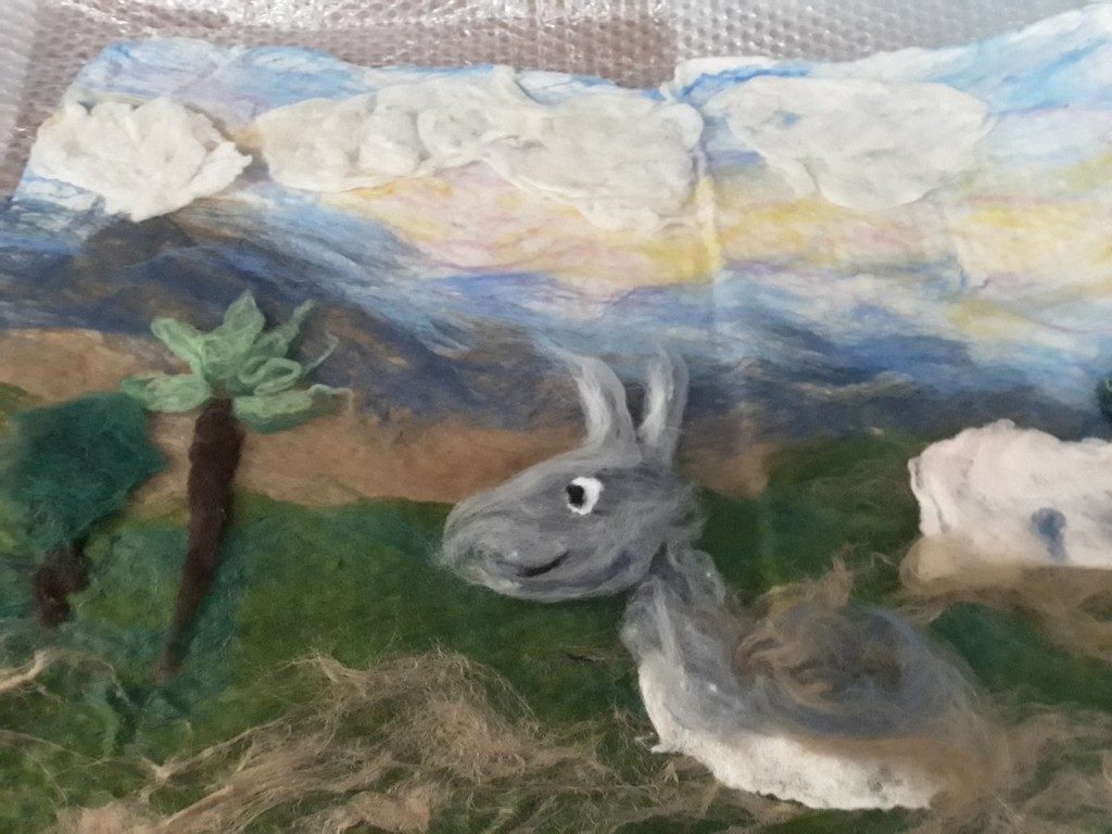 Под руководством педагога, мультипликатора Екатерины Нефедовой, воспитанники сваляли из шерсти облака, деревья, овечек, заготовки для домов и камни для колодца, а также виды Назарета и Вифлеема.