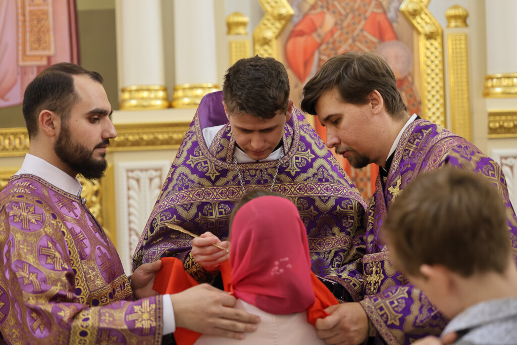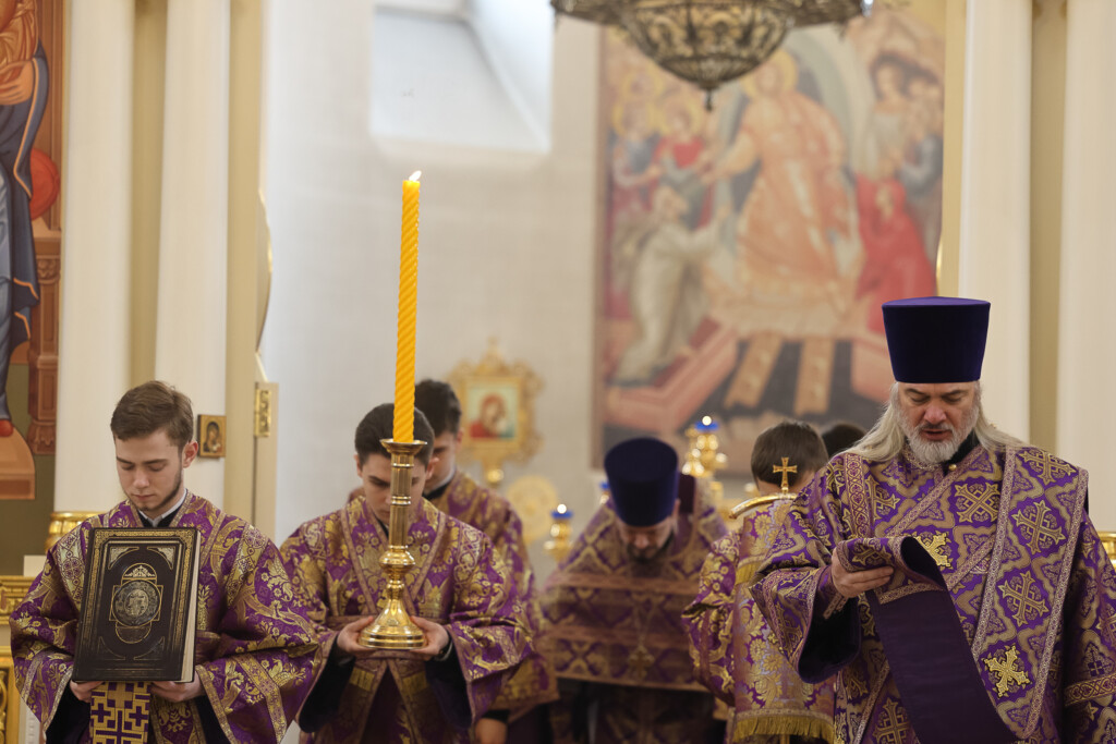 Его Высокопреосвященству сослужили и.о. секретаря Саратовского епархиального управления, благочинный Саратовского Центрального округа, секретарь главы Саратовской митрополии, настоятель соборного храма иерей Александр Чеботарёв; ключарь соборного храма иерей Роман Коздринь; заместитель секретаря Саратовского епархиального управления, руководитель административного секретариата Саратовской епархии иерей Сергий Феофанов; клирик соборного храма иерей Артемий Мягченков; клирик соборного храма иерей Сергий Карпов; клирик Свято-Троицкого кафедрального собора г. Саратова протодиакон Александр Пушкарёв; клирик Казанского храма г. Саратова протодиакон Олег Дроздов; клирик соборного храма диакон Сергий Малецков.